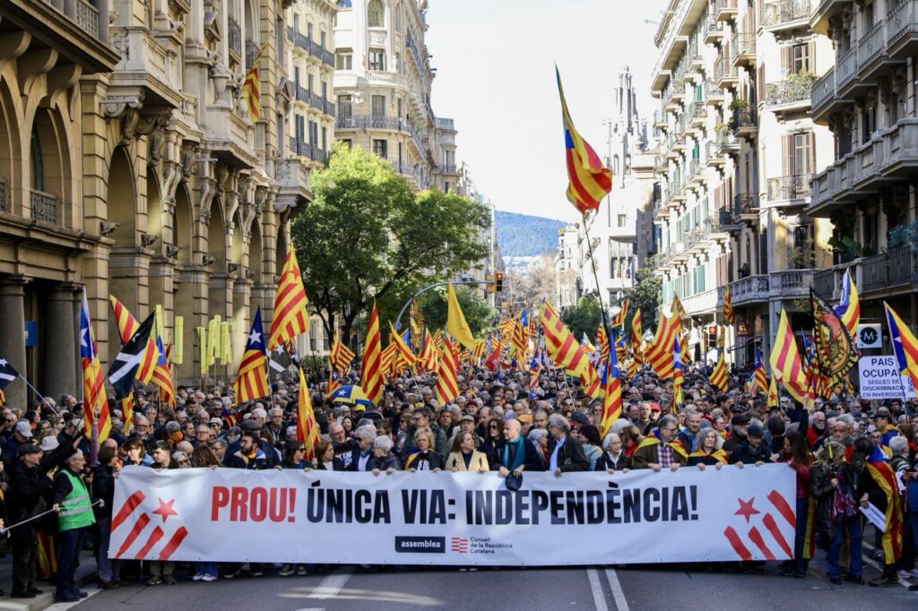 Milers de persones s’han manifestat aquest dissabte al migdia a Barcelona per dir prou al col·lapse de Rodalies i per reivindicar la independència com a única via per garantir uns serveis bàsics de qualitat a la ciutadania. La manifestació, convocada per l’Assemblea Nacional Catalana i el Consell de la República, ha denunciat l’espoli fiscal que pateix Catalunya i la discriminació premeditada perpetrada per l’Estat espanyol. La marxa ha començat a les 12 del migdia des del monument a Rafael Casanova i ha recorregut els carrers de la capital catalana encapçalada per una pancarta amb el lema de la manifestació: “PROU! Única via: Independència!”.
