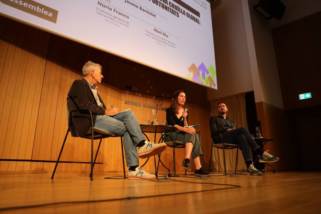 La politòloga Núria Franco va parlar del paper de la immigració a les nacions sense estat, i va assenyalar que a Catalunya —com al Quebec i Escòcia— es percep com una oportunitat d’inclusió més que no pas una amenaça. Tanmateix, va advertir que les polítiques d’integració determinaran si els nouvinguts experimenten inclusió o marginació. Franco va emfatitzar que els greuges estructurals que van alimentar el procés d’independència —el reconeixement nacional, el desequilibri fiscal i la defensa de la llengua i les institucions catalanes— continuen sense resoldre’s i inevitablement tornaran a sorgir.