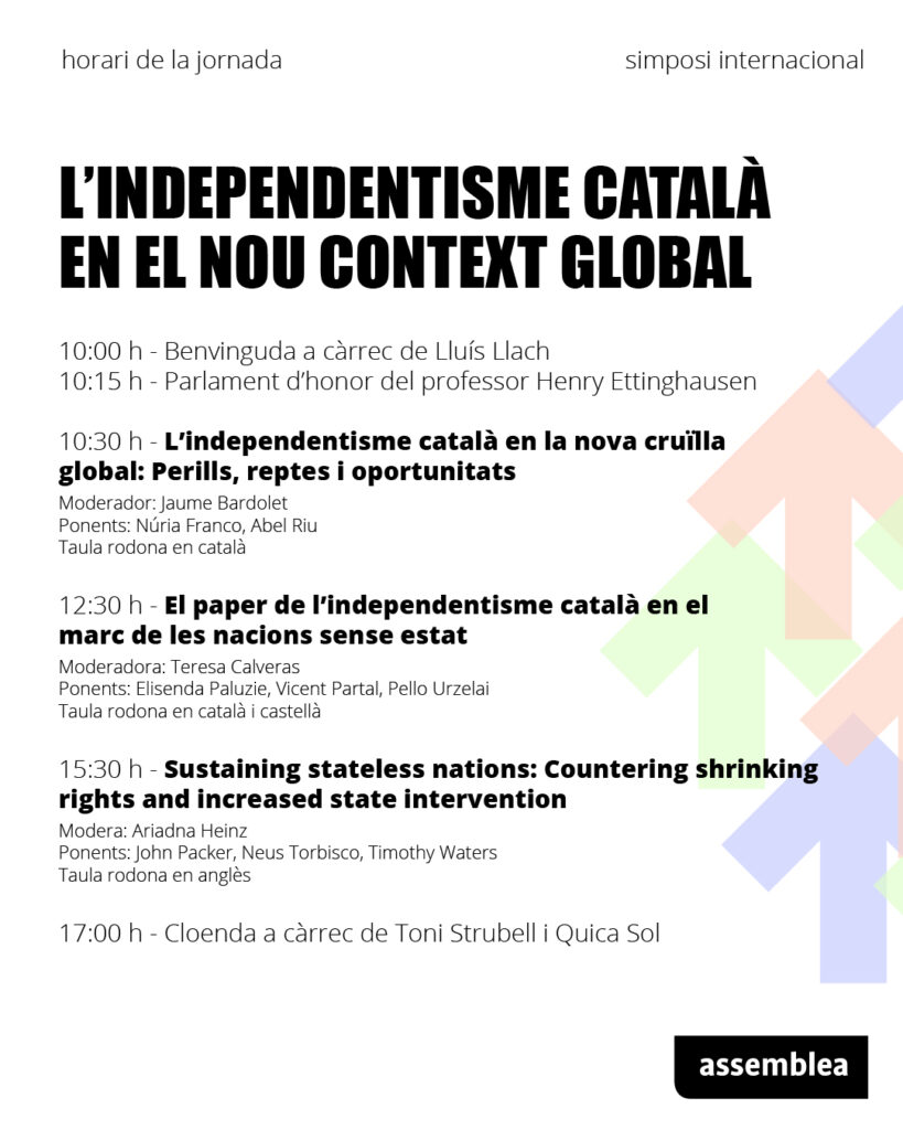 · 12:30 h – El paper de l’independentisme català en el marc de les nacions sense estat. (En català i castellà)