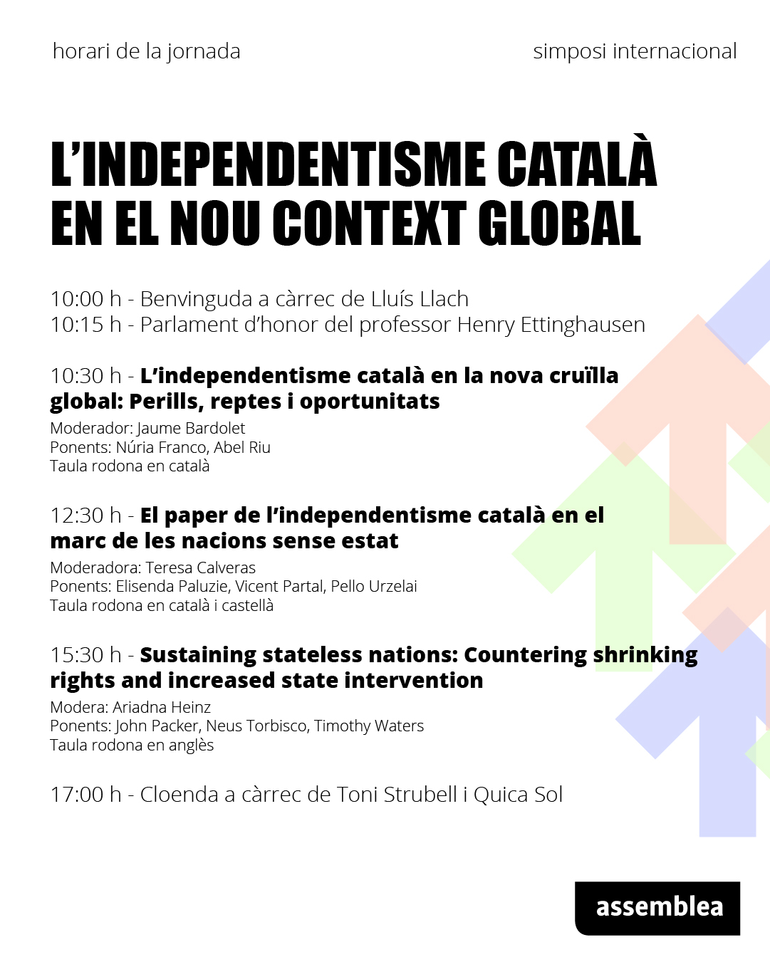 · 12:30 h – El paper de l’independentisme català en el marc de les nacions sense estat. (En català i castellà)