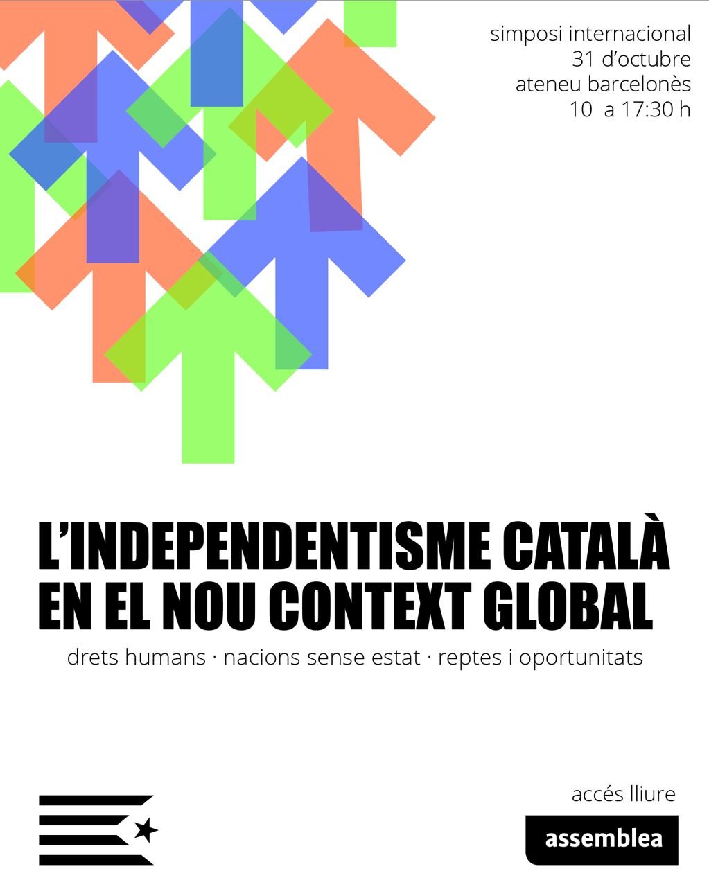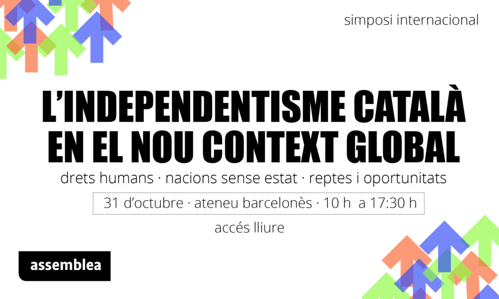 L’Assemblea Nacional Catalana organitza el simposi “L’independentisme català en el nou context global” en què, al llarg de tres taules rodones, s’abordaran els reptes i oportunitats per a l’independentisme català i les nacions sense estat en el nou escenari internacional, així com els retrocessos en drets humans i l’augment de la intervenció estatal. Les xerrades seran a la Sala Oriol Bohigas de l’Ateneu Barcelonès.